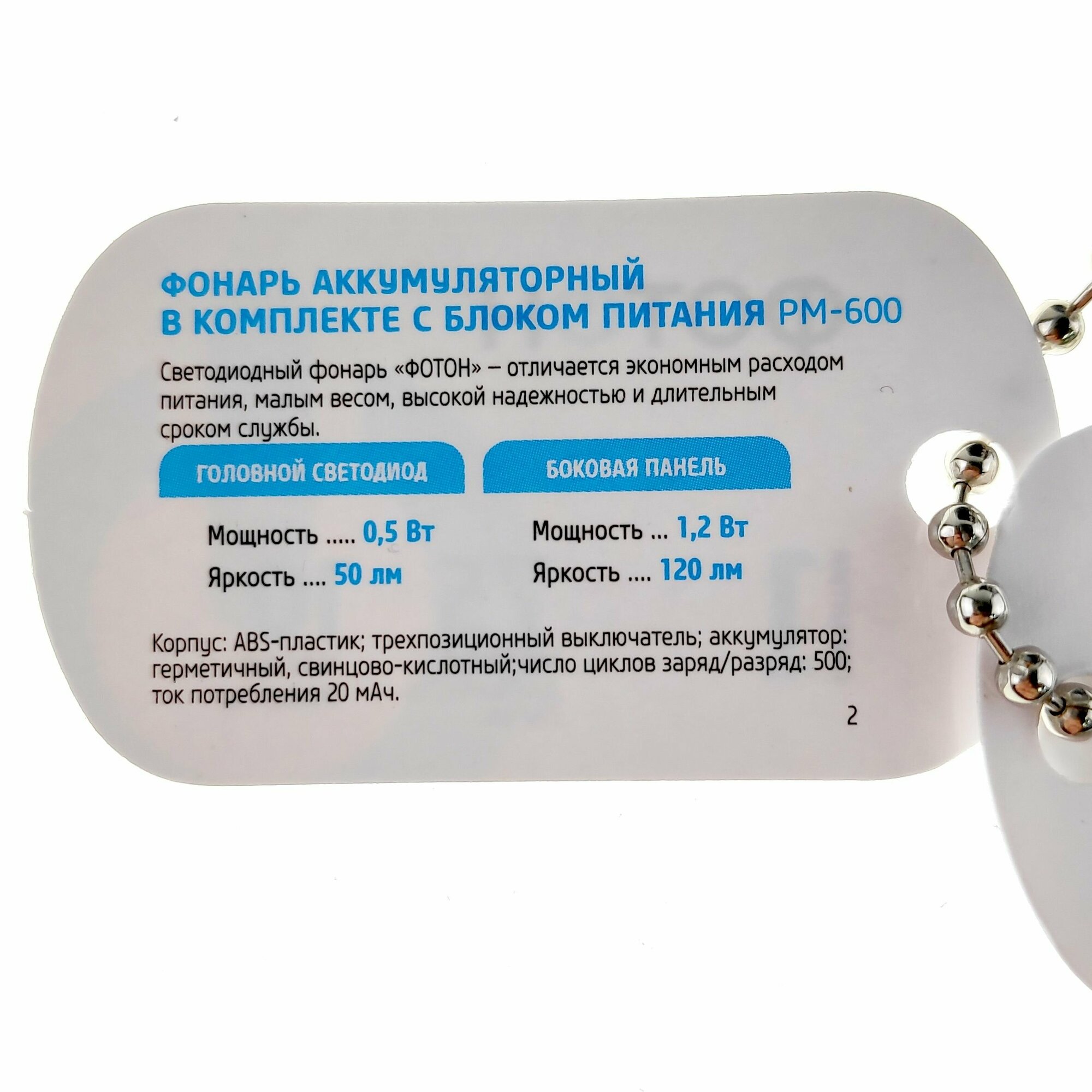 Купить Фонарь Фотон РМ-600, 0.5W, аккумуляторный, цвет: черный