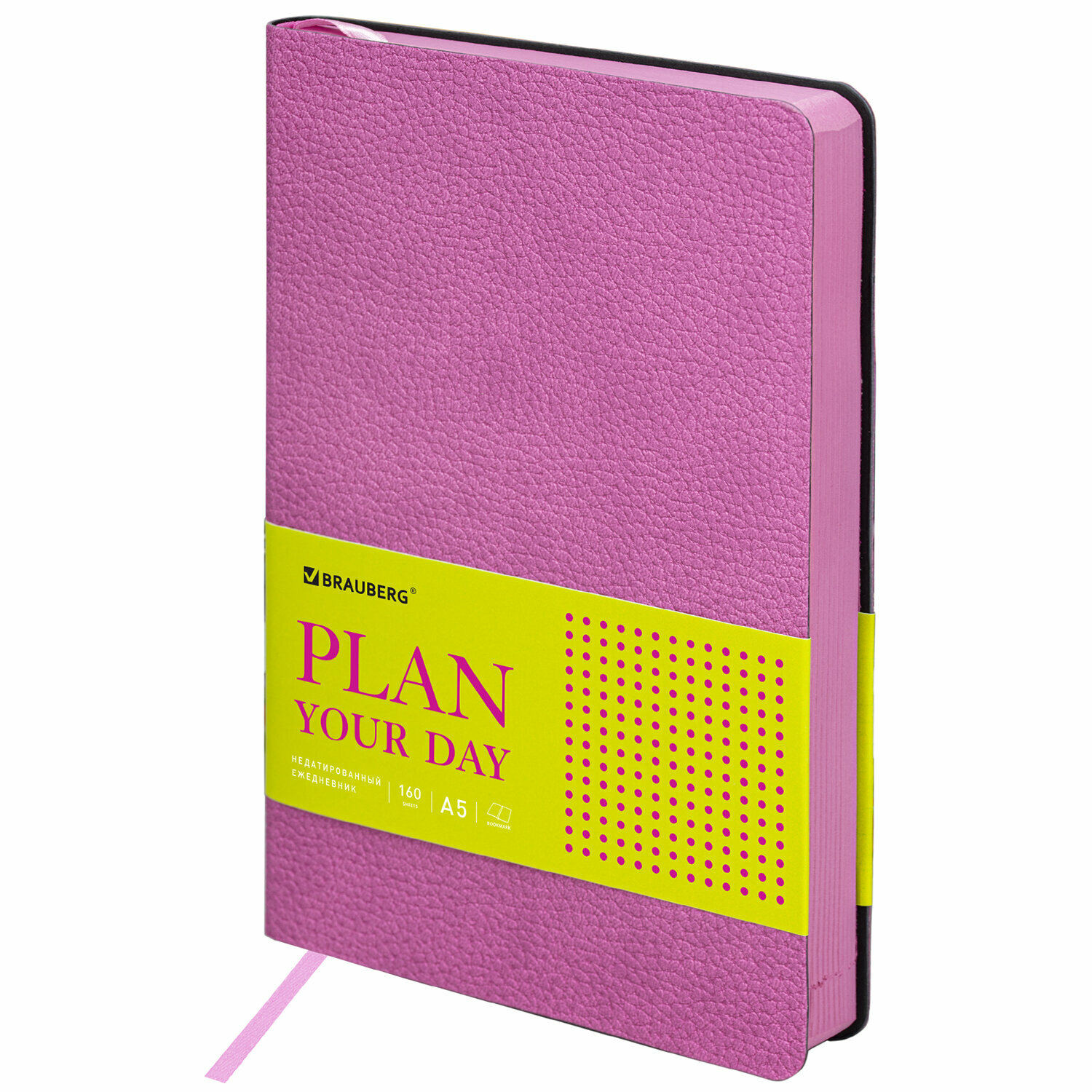 Ежедневник недатированный BRAUBERG А5 (138х213 мм) "Stylish", кожзам, гибкий, 160 л., розовый