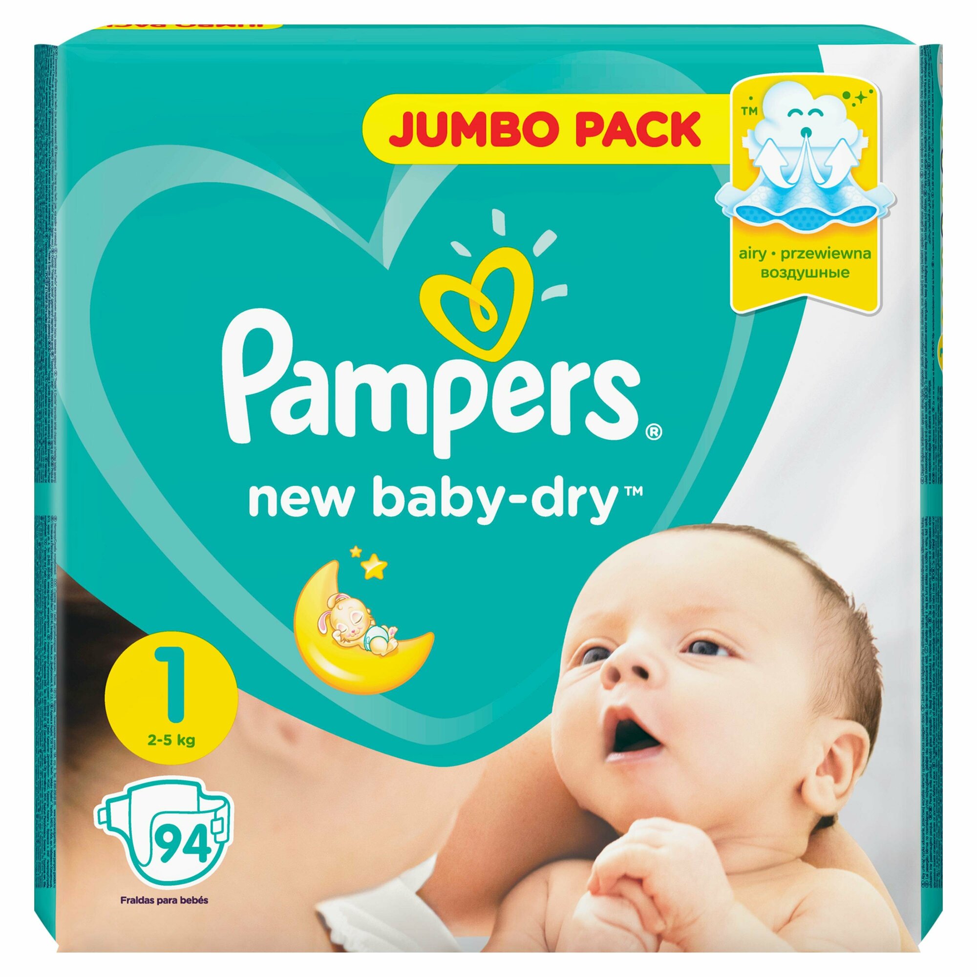 Подгузники PAMPERS New Baby-Dry Newborn (2-5 кг) Джамбо Упаковка 94шт, 1 шт.