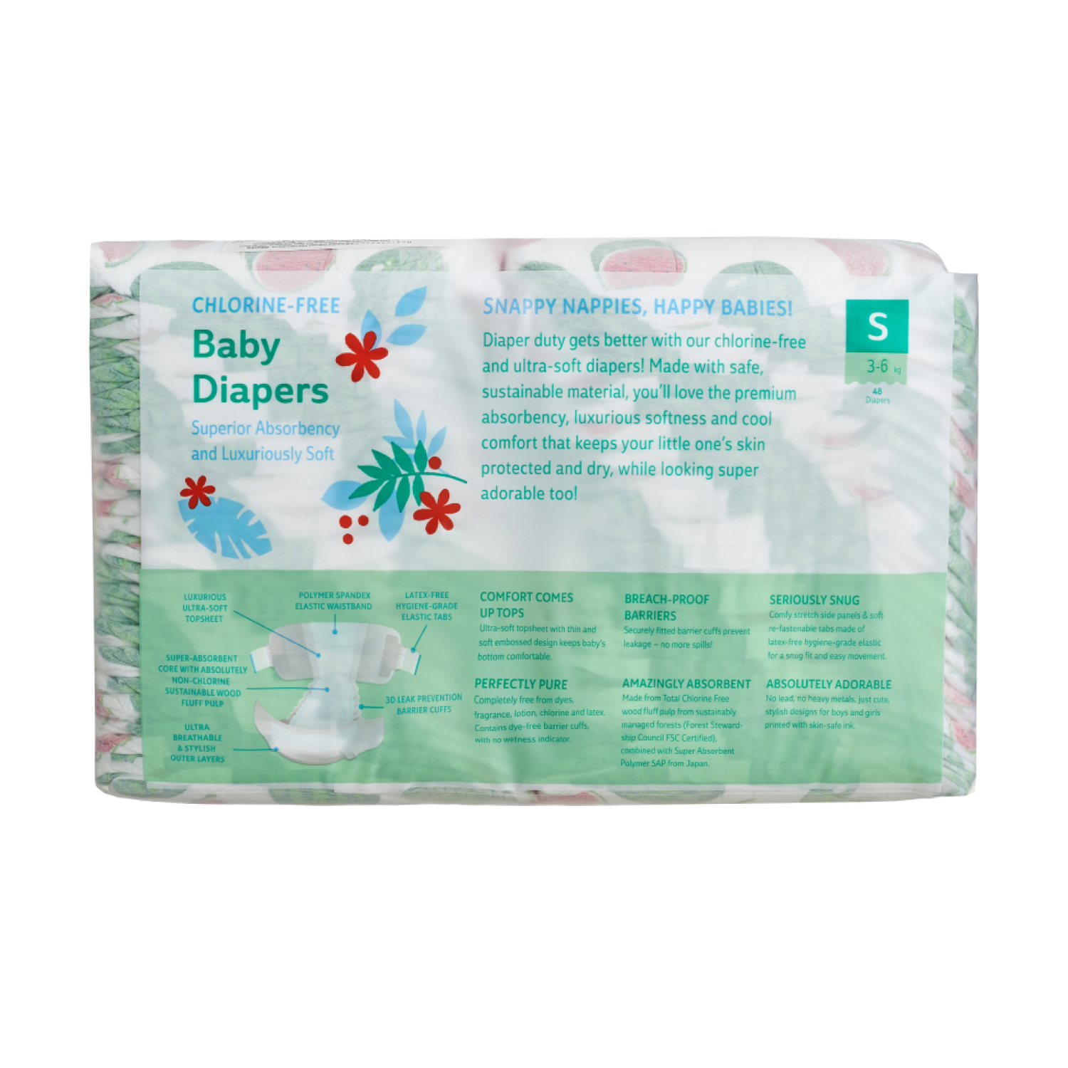 Подгузники размер S, расцветка "Арбузы" Offspring 1200 г 48 шт