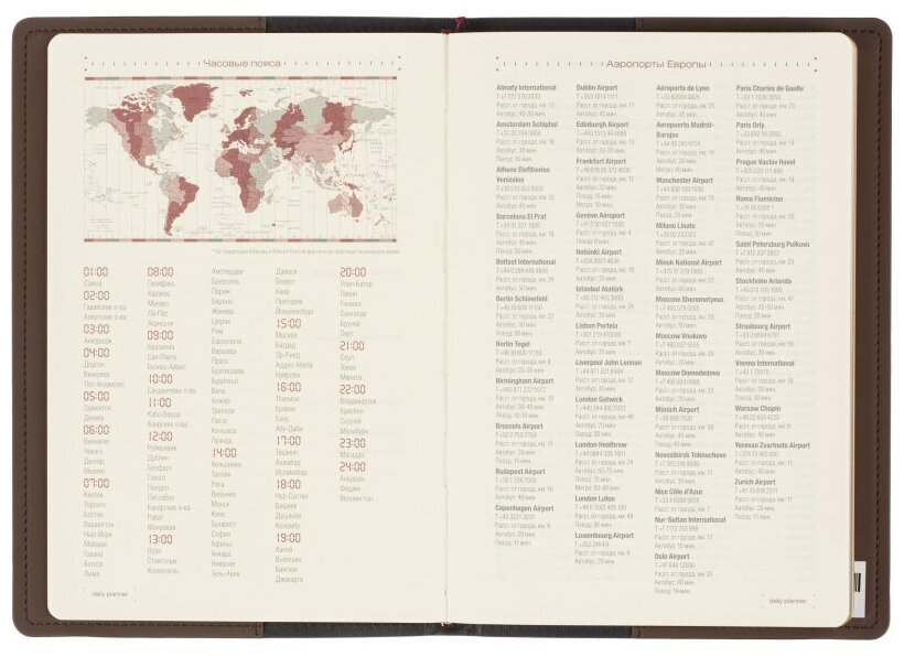 | Особенности | карман для визиток / ляссе / поля / прошивка по периметру обложки / справочная информация / цветной обрез |
