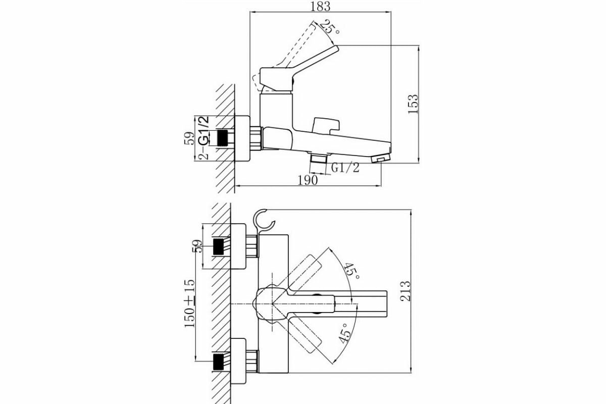 | Длина излива | 183 мм |