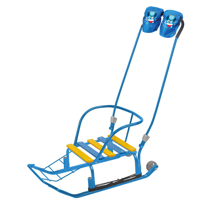 Санки детские с ручкой, спинкой, колесиками и рукавичками Nika "Тимка 3К" (голубой)