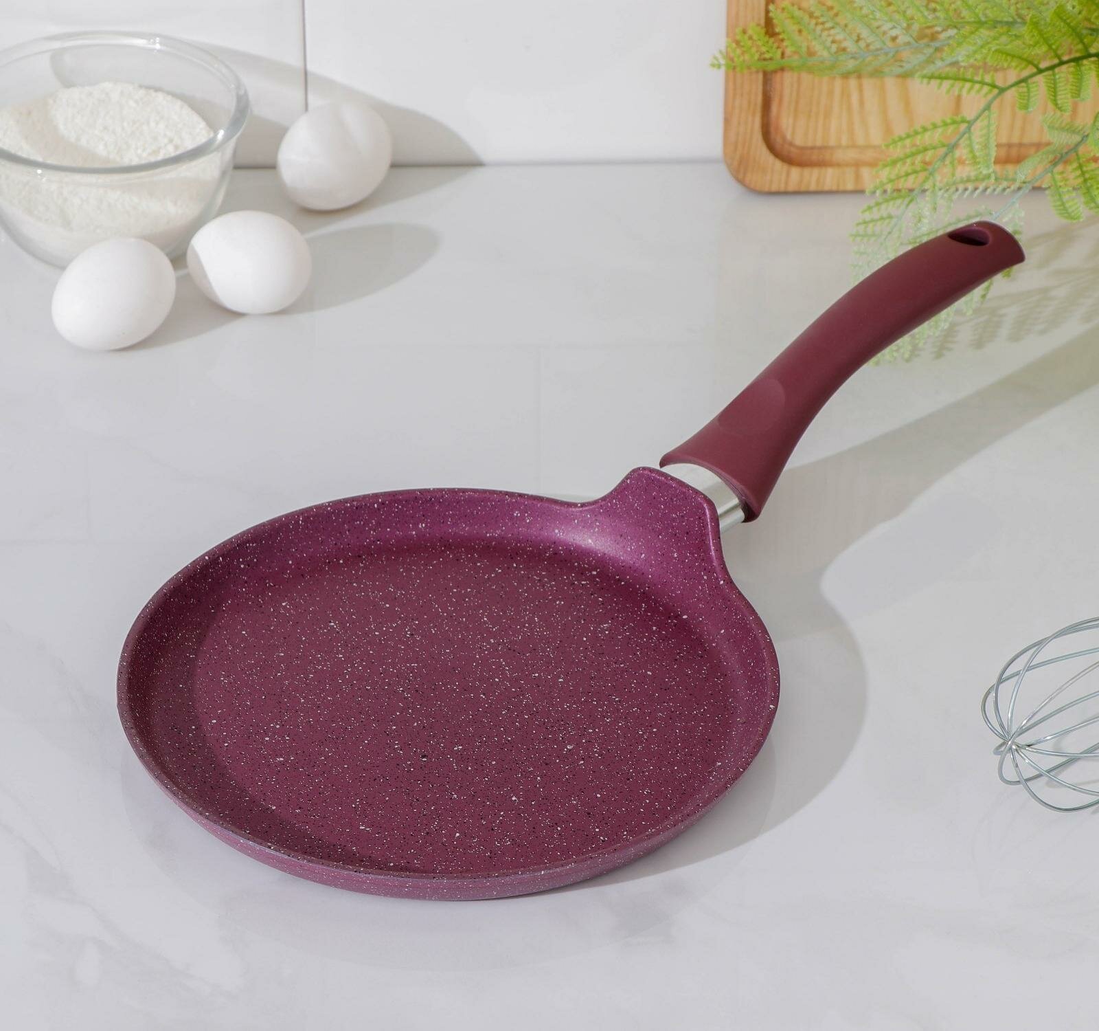 Сковорода блинная с антипригарным покрытием, материал литой алюминий, цвет розовый
