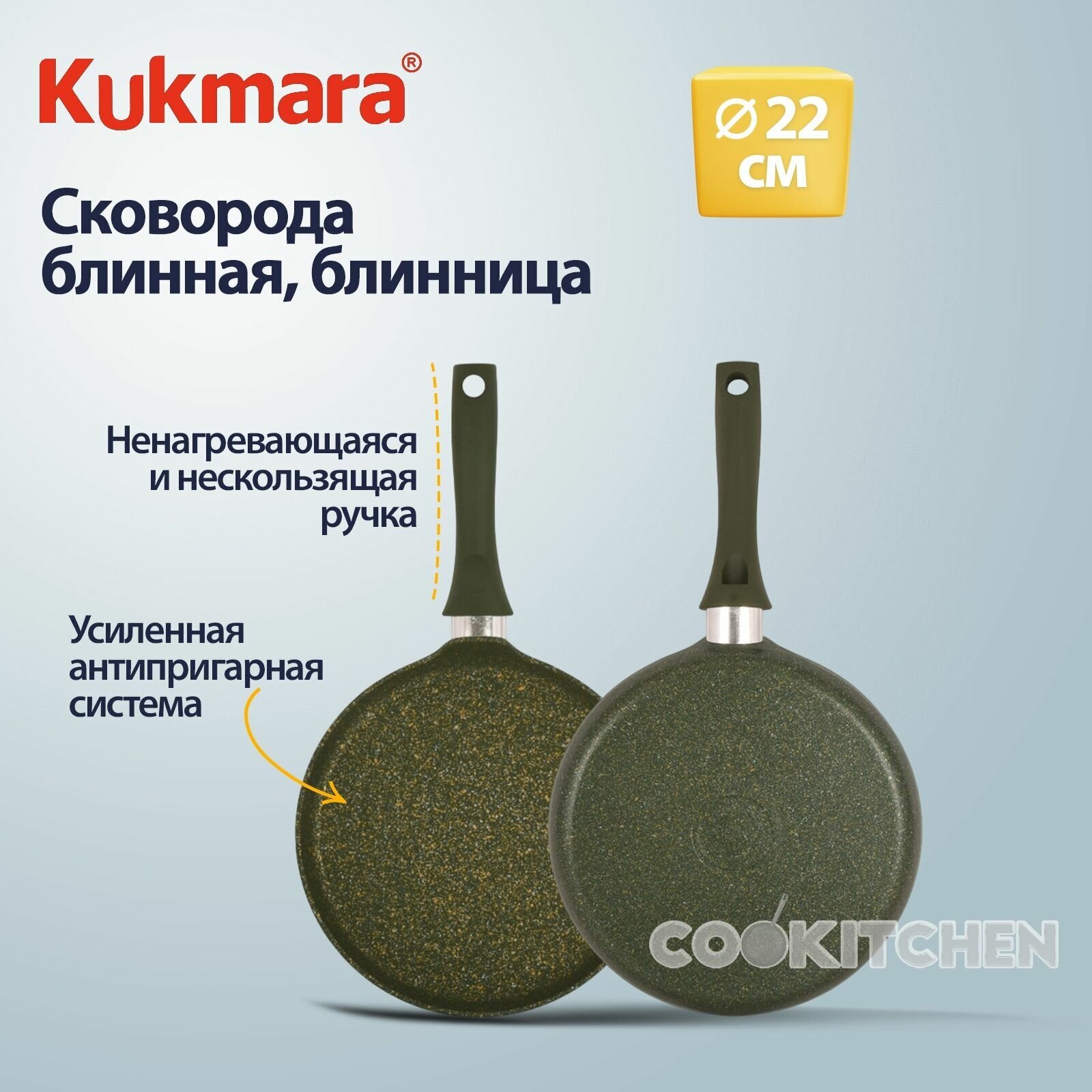 Сковорода блинная кукмор сб220tsl 22 см, зеленый