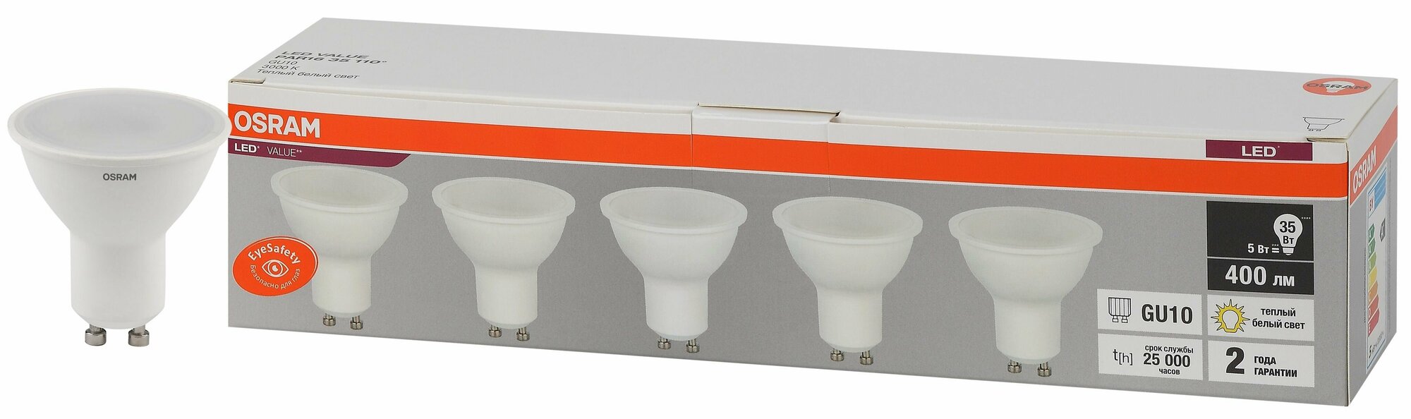 Упаковка из 5 светодиодных ламп LED Value LVPAR1675 10SW/865 230В GU10 RU OSRAM