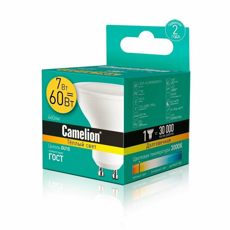 11654 Camelion / Лампа светодиодная Camelion LED GU10-7w-830-GU10 [GU10, 7 Вт, 460 лм, 3000 K, 170-2