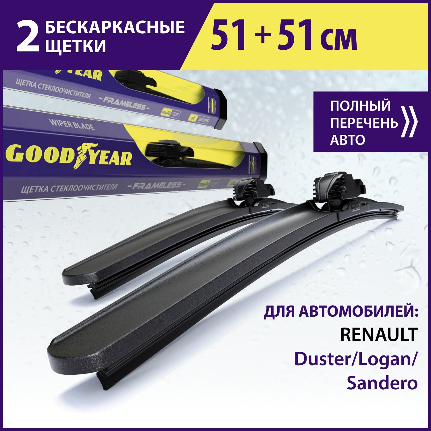 Купить 2 Щетки стеклоочистителя в комплекте (51+51 см), Дворники для автомобиля GOODYEAR для RENAULT Duster (11-14)/Logan (04-16)/Sandero (09-14)