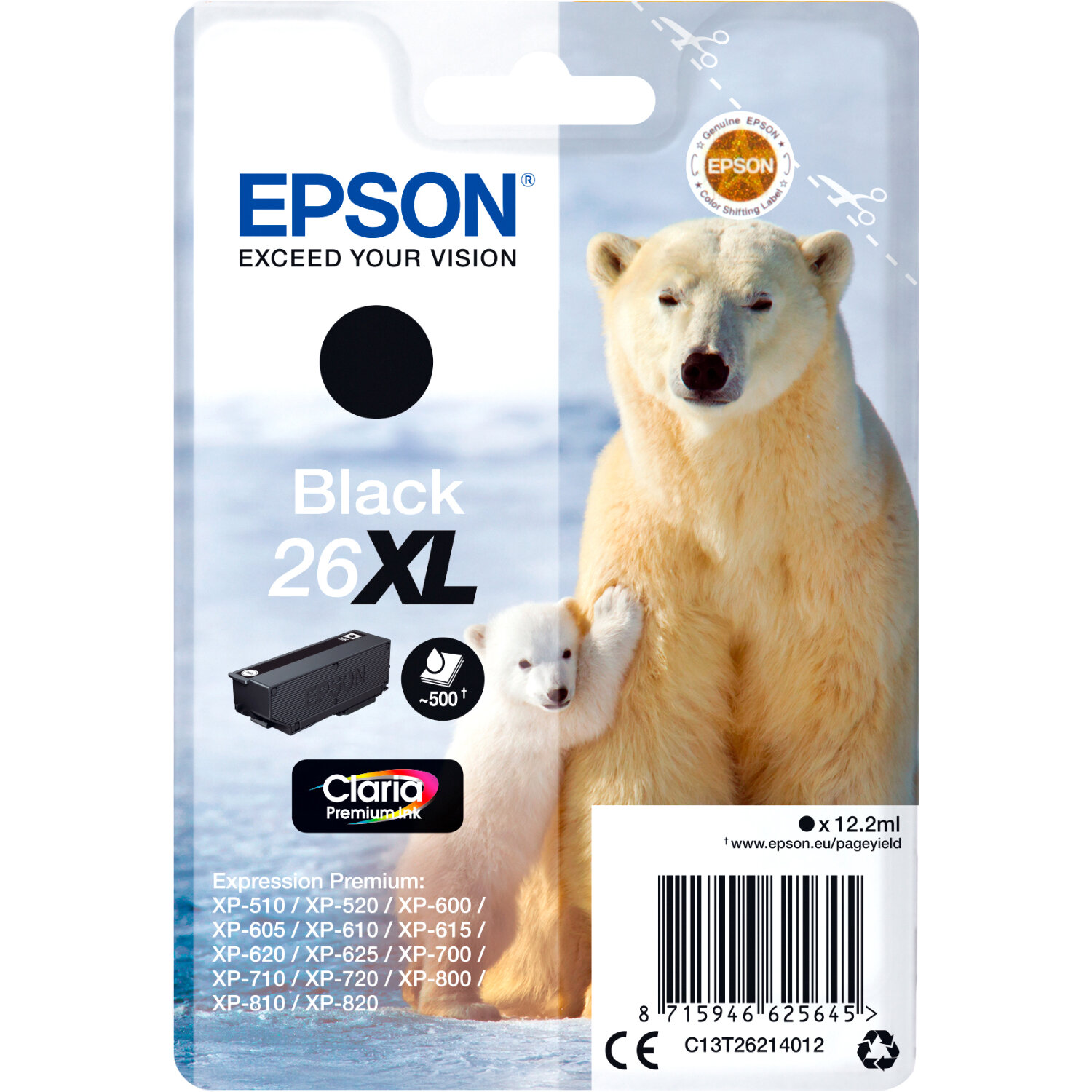 Картридж Epson C13T26214010/12 26XL для XP-600 XP-605 XP-700 XP-800 Black Черный увеличенный