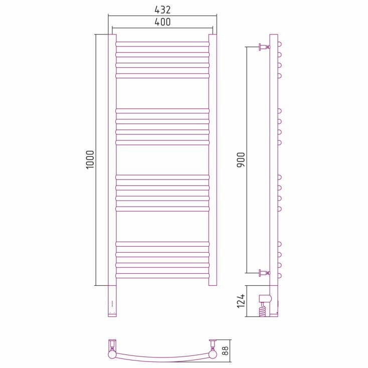 Полотенцесушитель электрический Сунержа Богема 3.0 выгнутая 1000х400 МЭМ левый Сатин