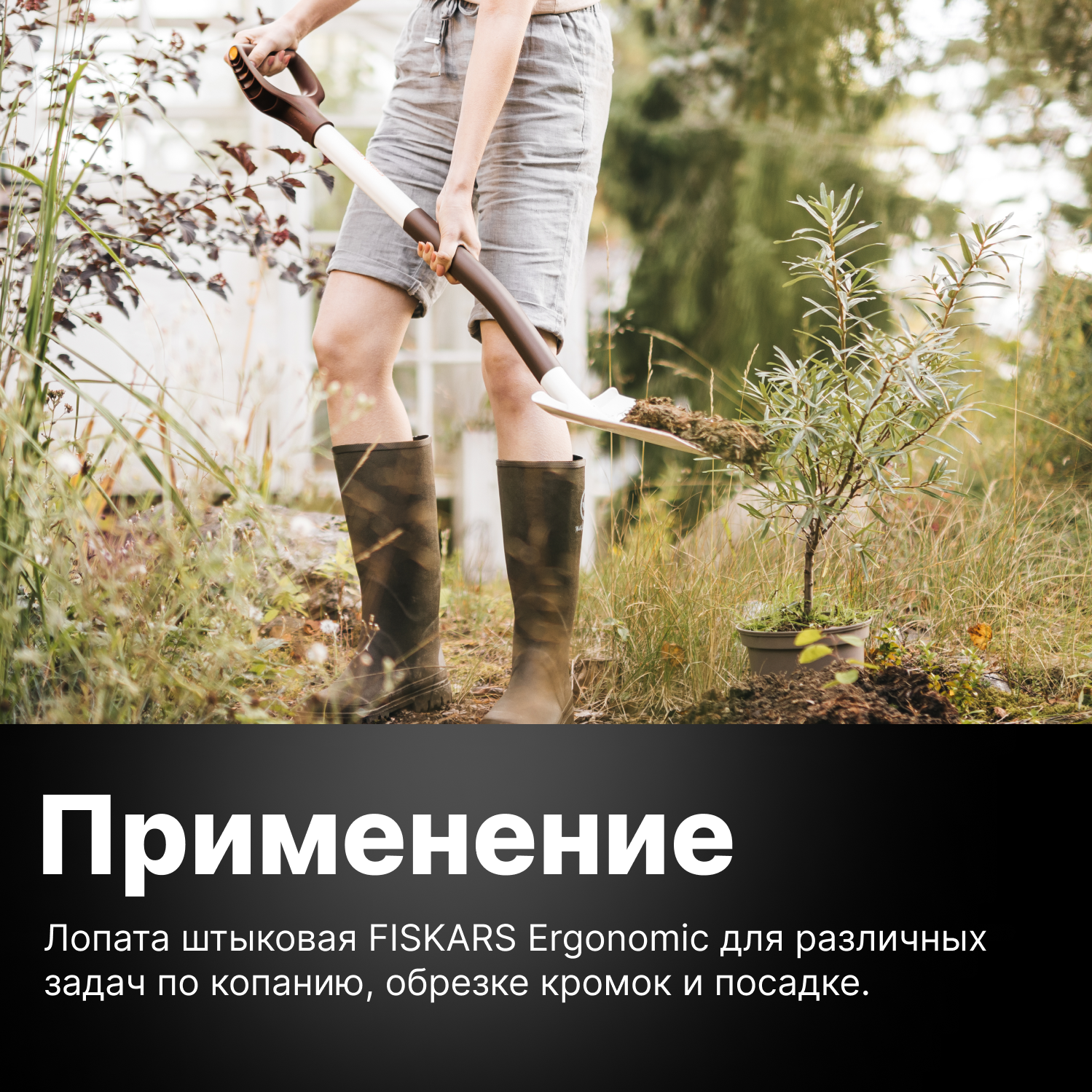 Лопата Fiskars Ergonomic, с закругленным лезвием, с черенком и ручкой, 1250 мм