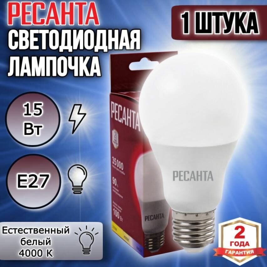 Лампа светодиодная РЕСАНТА LL-R-A65-15W-230-4K-E27 76/1/20
