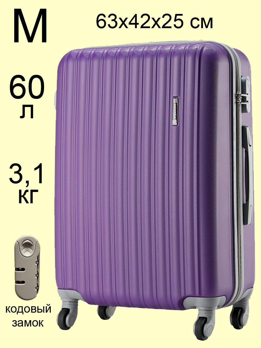 Купить Чемодан на колесах ANANDA, средний размер М, 63 см, 60 л, фиолетовый
