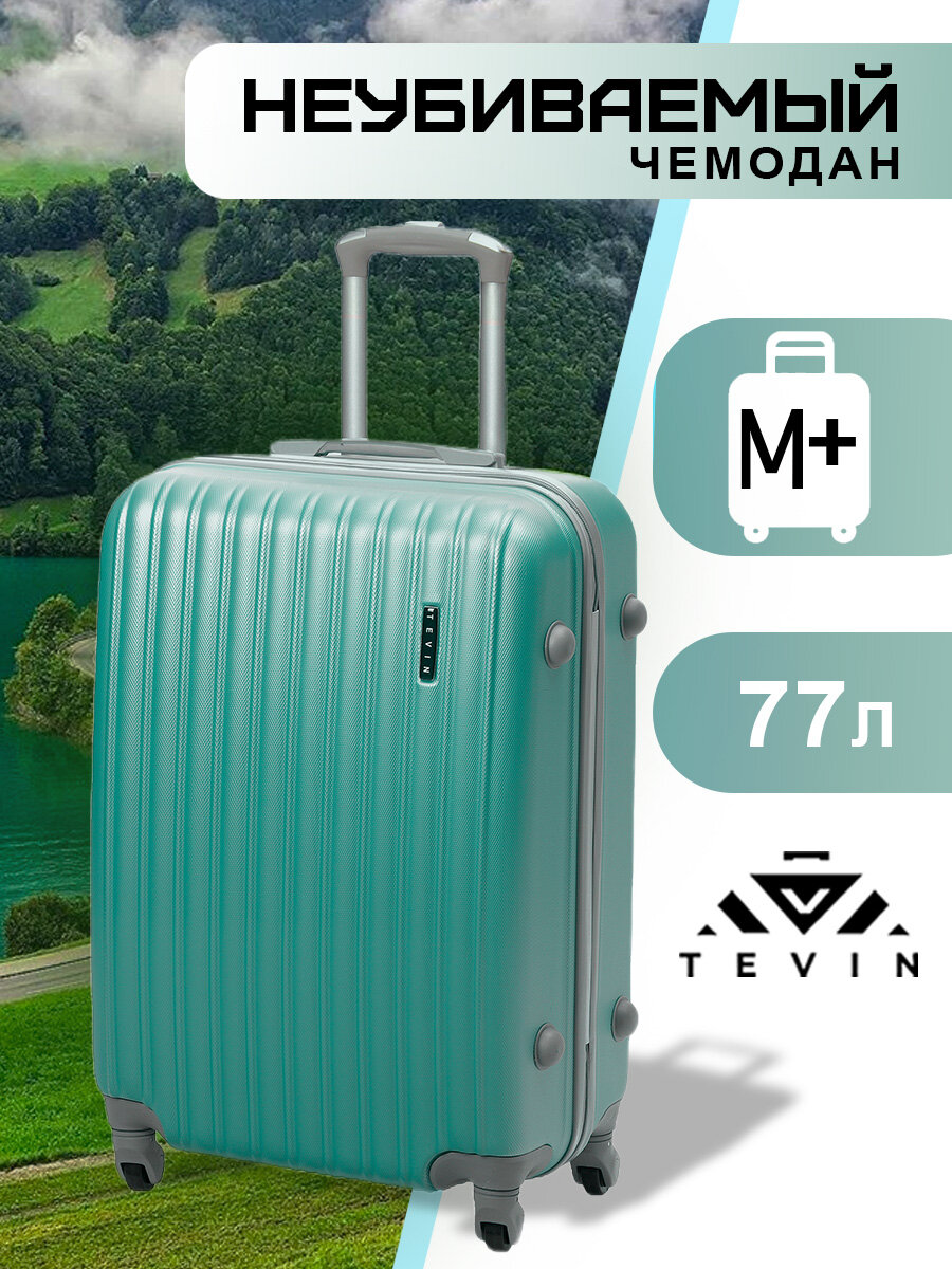 Чемодан на колесах дорожный средний багаж на двоих для путешествий m+ TEVIN размер М+ 68 см 77 л легкий 3.7 кг прочный абс пластик Зеленый мятный