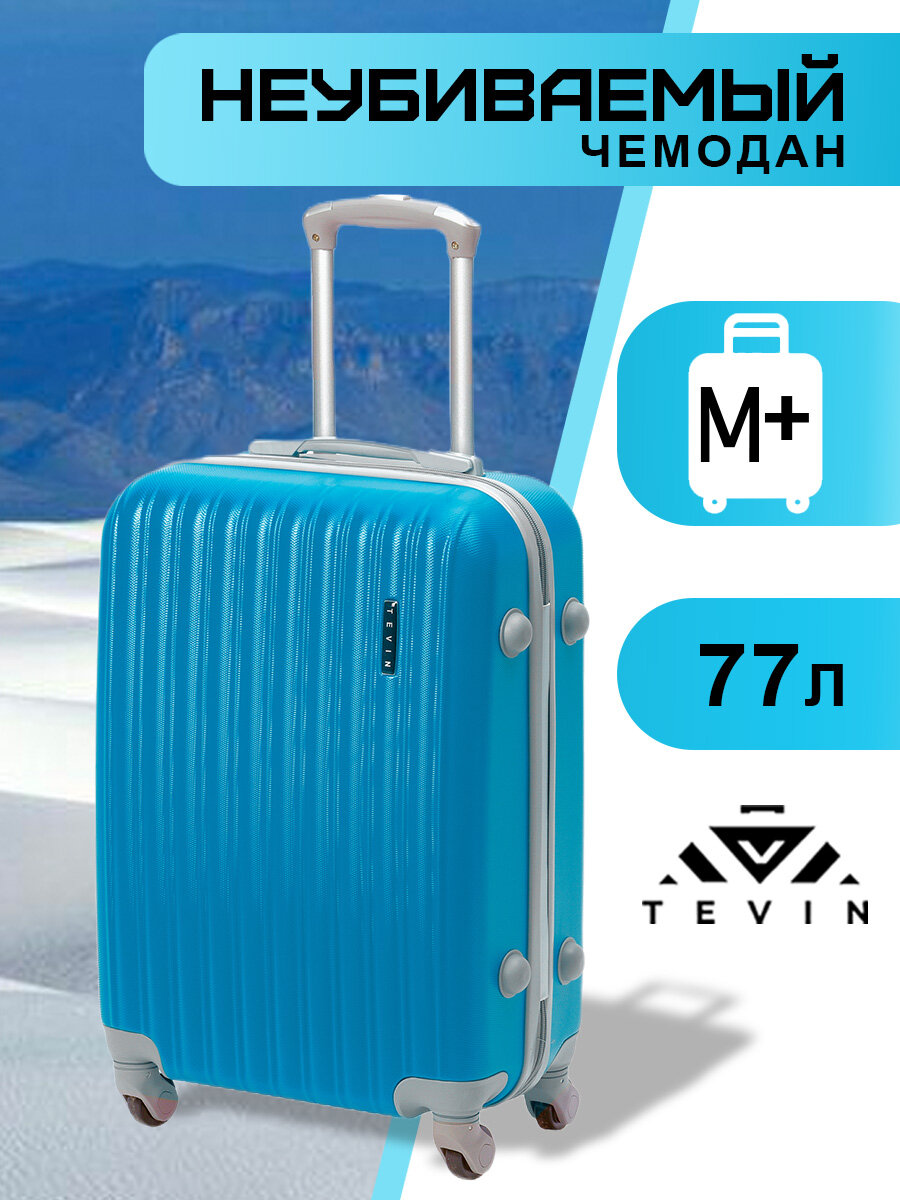 Чемодан TEVIN, 77 л, размер M+, голубой