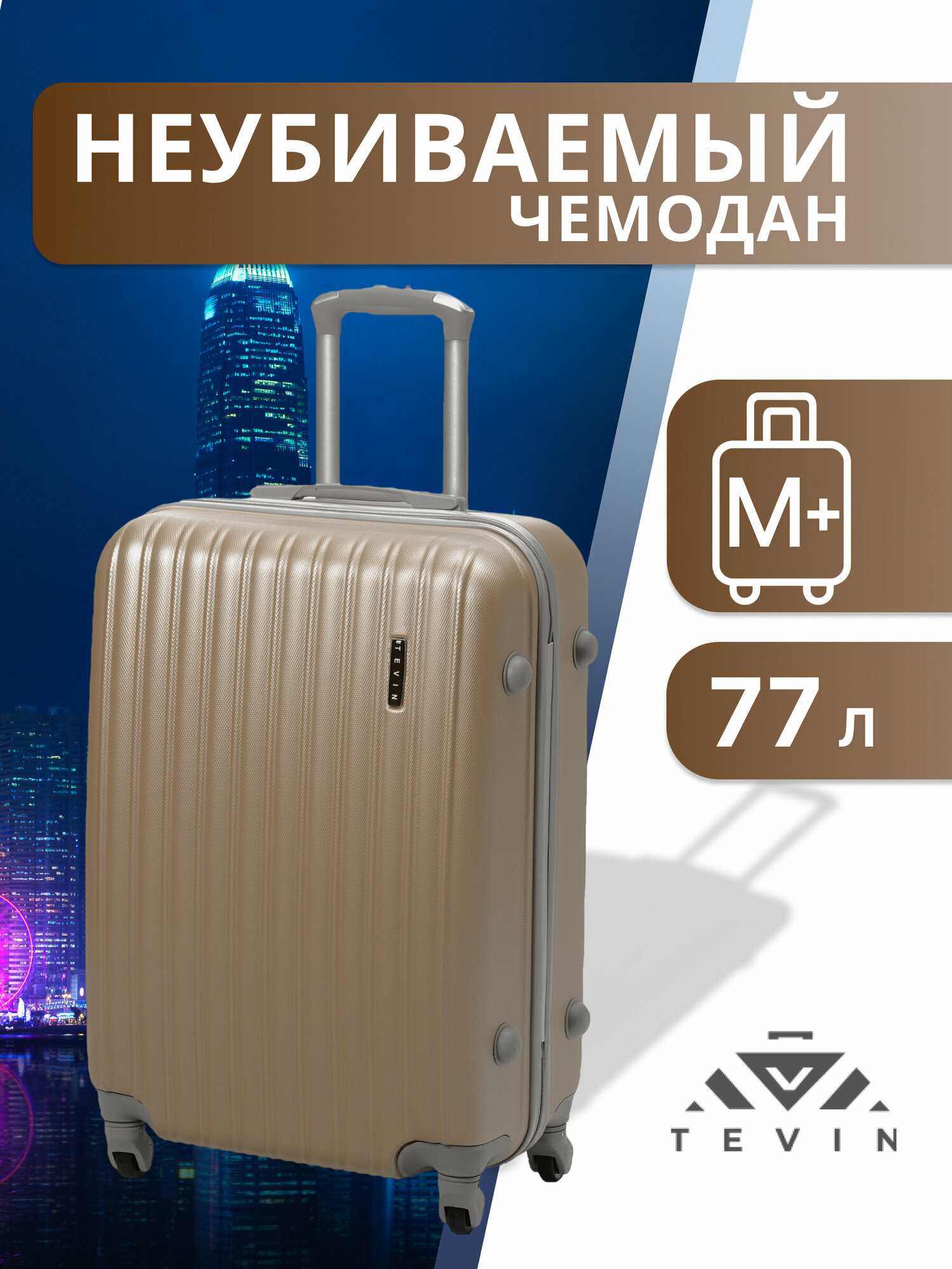 Чемодан TEVIN, 77 л, размер M+, светло-серый