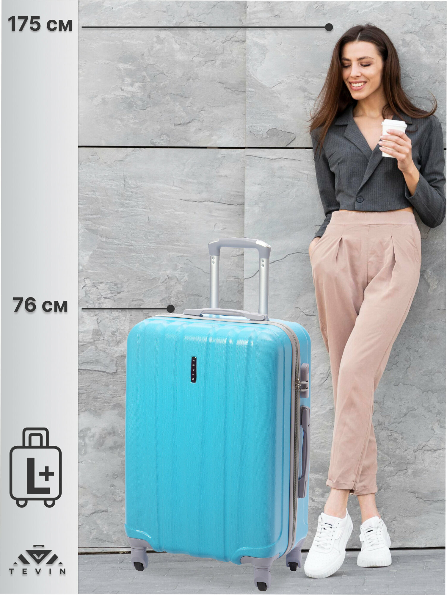 Чемодан на колесах дорожный большой семейный багаж для путешествий l TEVIN размер Л 73 см 105 л легкий и прочный abs пластик Голубой нежный