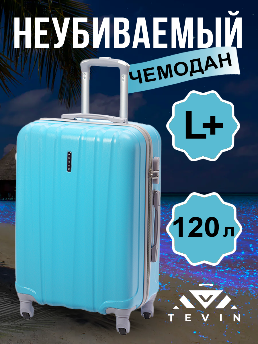 Чемодан на колесах дорожный большой семейный багаж для путешествий l+ TEVIN размер Л+ 76 см xl 120 л xxl легкий прочный abs пластик Голубой