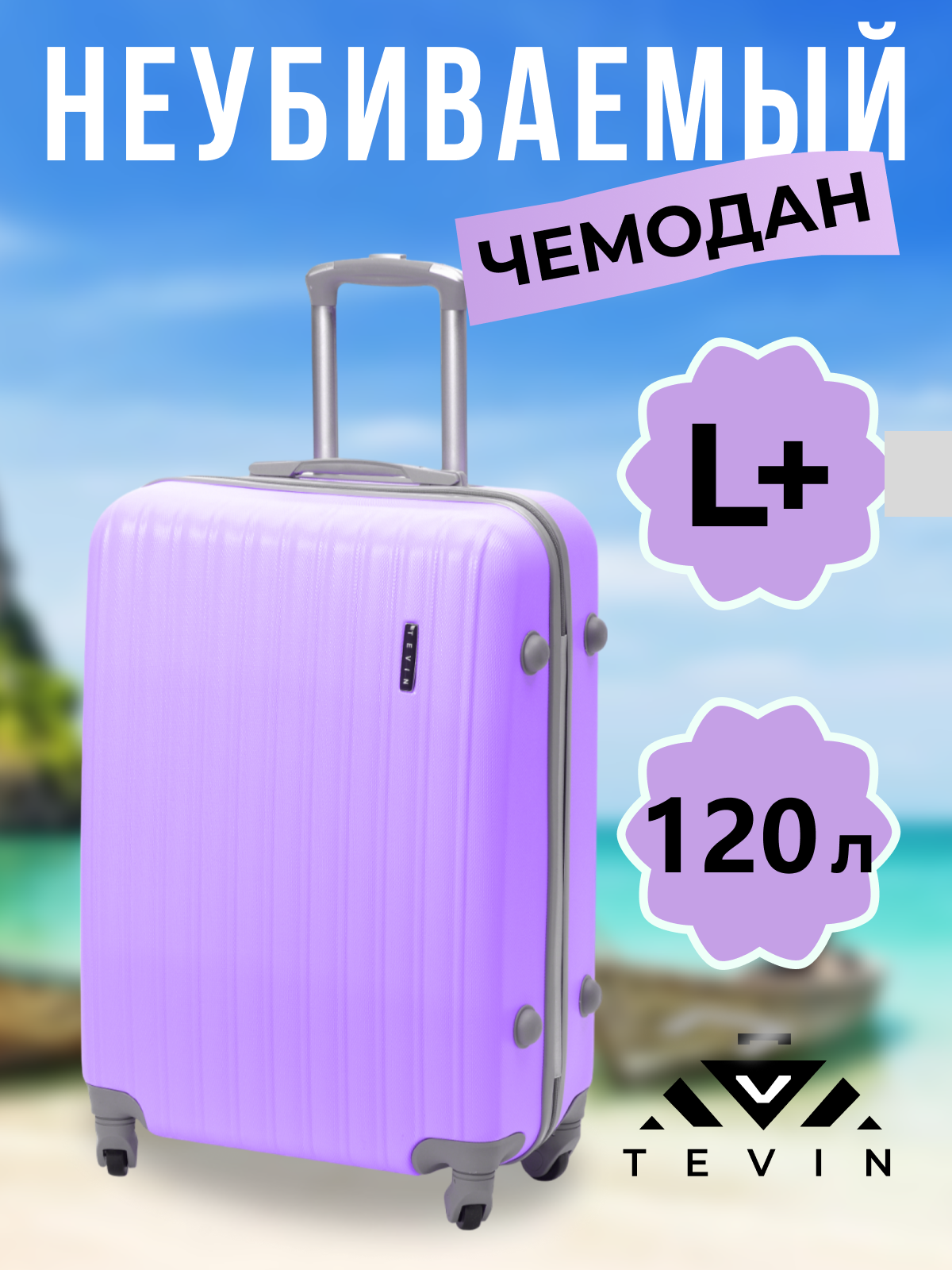 Чемодан на колесах дорожный большой семейный багаж для путешествий l+ TEVIN размер Л+ 76 см xl 120 л xxl легкий прочный abs пластик Фиолетовый