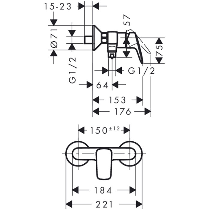 Смеситель для душа Hansgrohe Logis, однорычажный, хром (71600000)