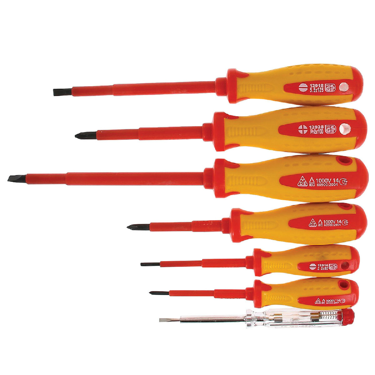 Набор отверток диэлектрических до 1000 В Matrix тестер до 250 В, двухкомп.рукоятки, 7 предм 13355