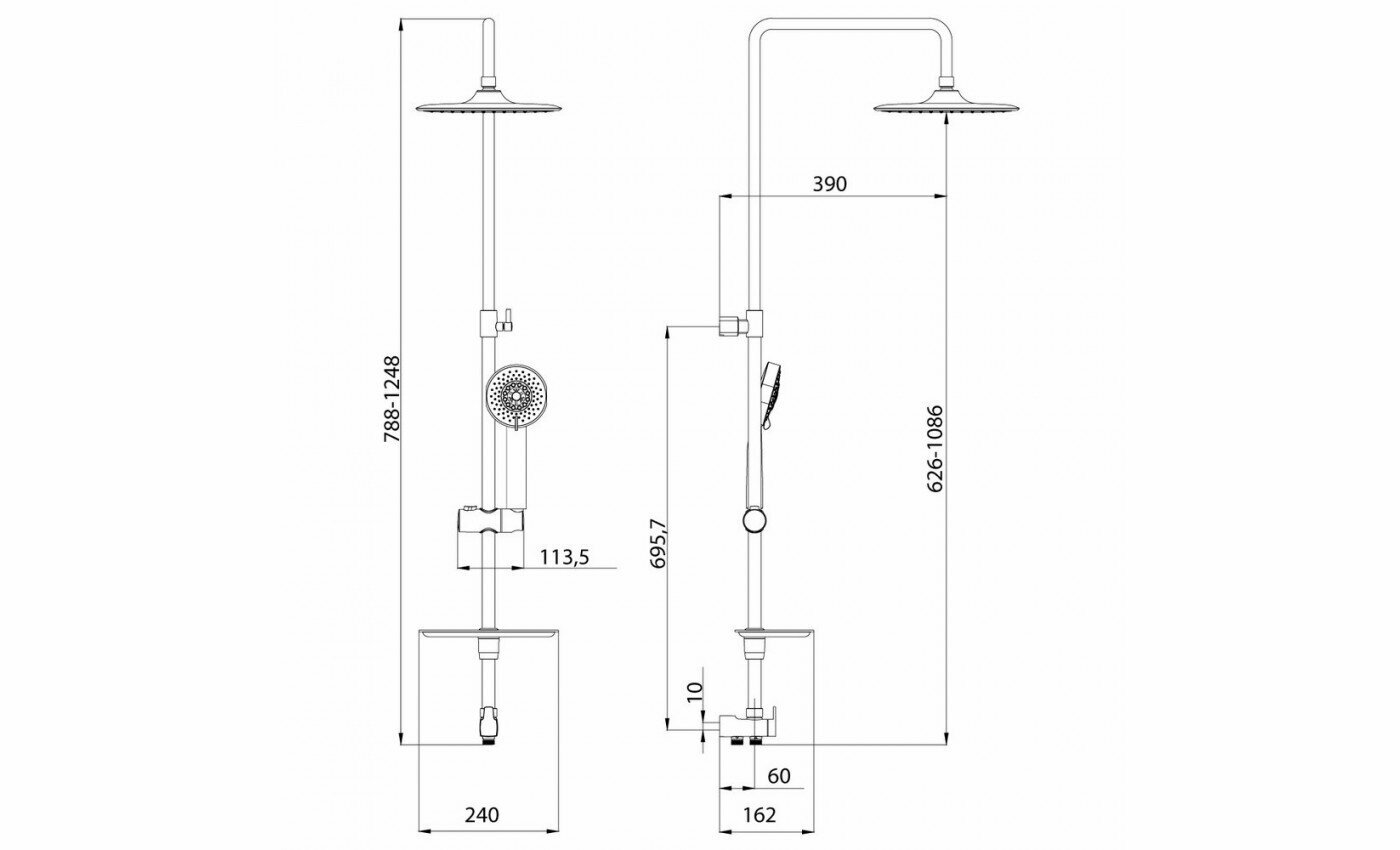 Душевая стойка LEMARK LM8803C с регулируемой высотой штанги и верхней душевой лейкой "Тропический дождь"