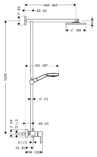 | Дополнительная информация | система очистки от загрязнений QuickClean; высота стойки для душа: 1030 мм; диаметр душевой лейки: 100 мм; диаметр верхнего душа: 180 мм |
