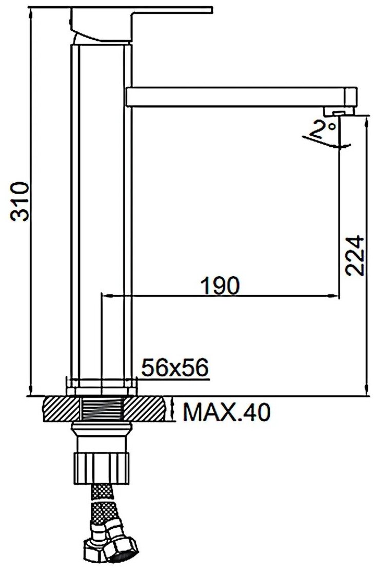 Смеситель для умывальника, высокий, карт.35мм, гайка Ledeme, 1/10; L1133