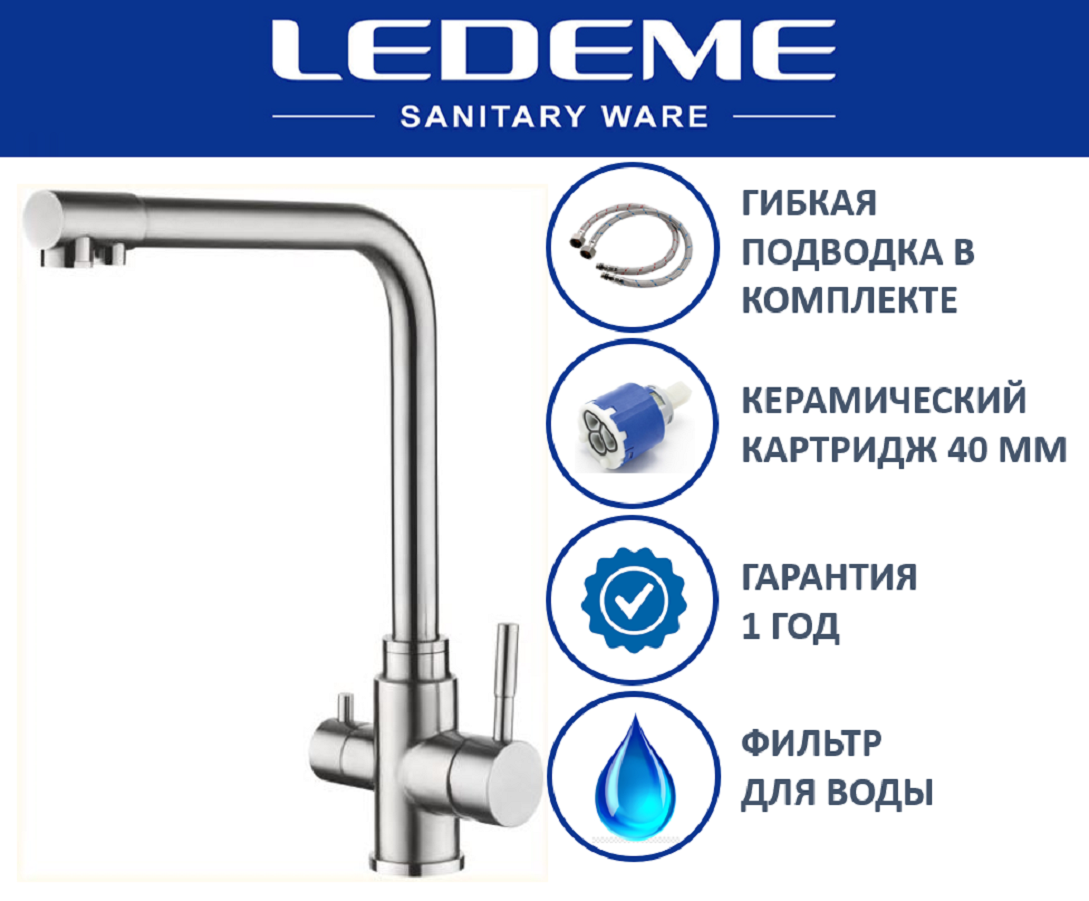 Сохранить4355-3 Смеситель Кухня LEDEME с выходом для питьевой воды. d35 интересное: