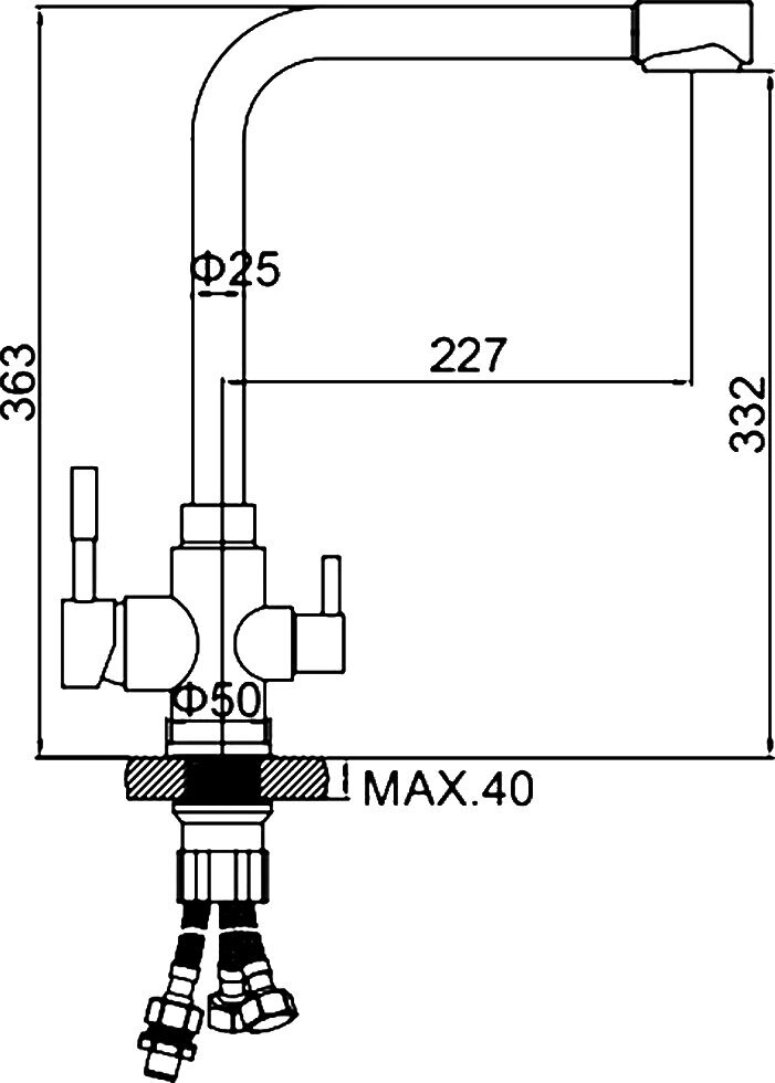 | Плюсы: | 2 крана для фильтра и простой воды. |