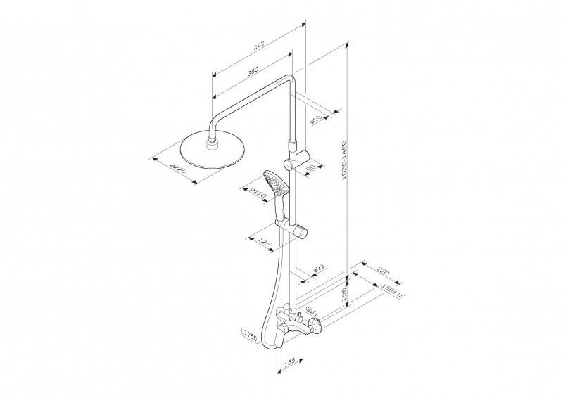 Душ.система,набор:см-ль д/душа с переключателем AM.PM Sunny F0785C800,верхний душ d220 мм, ручной душ 110