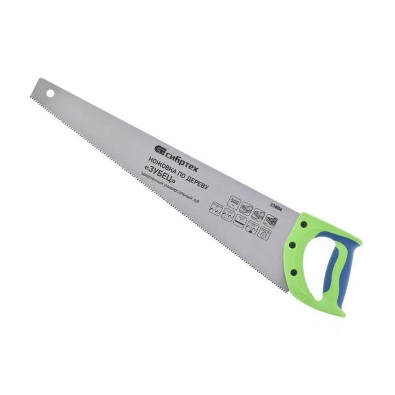 Ножовка по дереву Зубец, 500 мм, 7 TPI, зуб 2D, каленый зуб, 2-х компонентная рукоятка Сибртех, СИБРТЕХ 23804 (1 шт.)