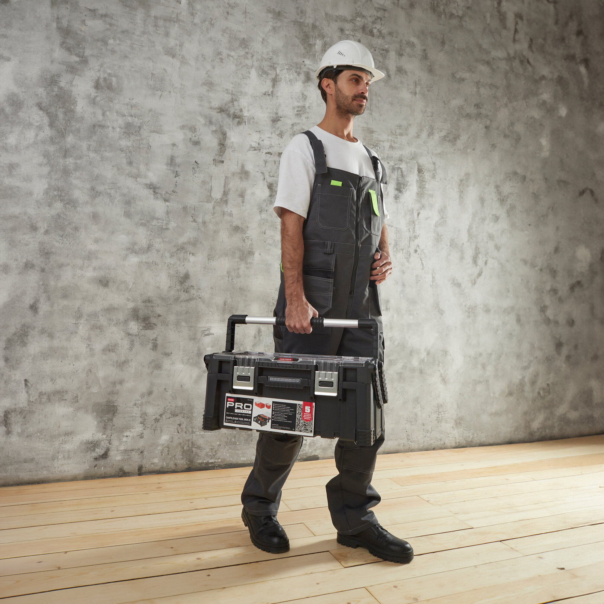 | Дополнительная информация | вмещает электроинструмент и громоздкие инструменты, двойные стенки, длинная металлическая рукоятка, профессиональный организатор: 11 съемных лотков 2х размеров, длинное отделение для ручного инструмента |