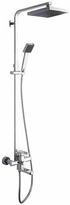| Комплектация | Смеситель; Душевая стойка; Верхний душ; Кронштейн для верхнего душа; Держатель лейки; Душевая лейка; Душевой шланг 1,5м.; Крепления; Отражатели; Эксцентрики |