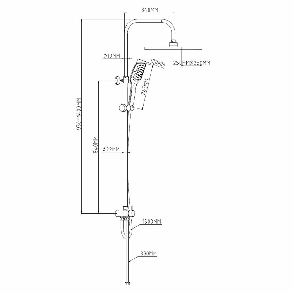ESKO. Душевая система с верхним тропическим душем, душевая стойка, лейка, шланг. Для смесителя, для ванны, для душа