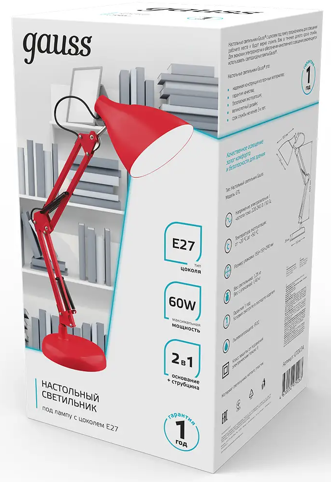 Ниже Вы можете прочитать отзывы на Настольная лампа Gauss GTL003 60W 220-240V E27 красный струбцина и основание 1/12, ознакомится с подробными характеристиками, посмотреть интересные обзоры и фотографии на Настольная лампа Gauss GTL003 60W 220-240V E27 красный струбцина и основание 1/12.