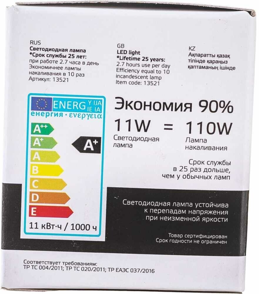 | Минусы: | Усы проваливаются, из заказанных 6шт в 3х провалились контакты. Света как по мне не тянет на 11вт |