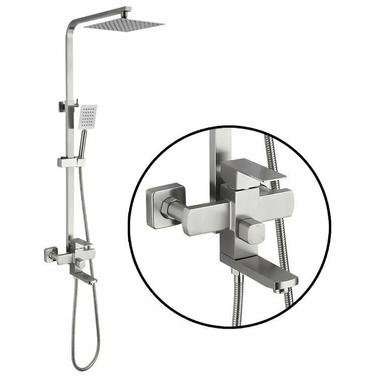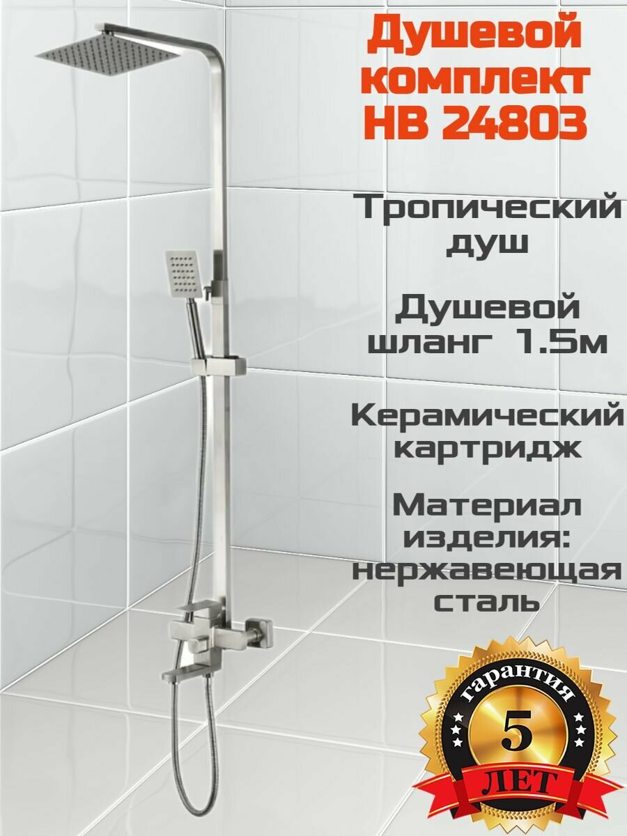 Душевая система из нержавеющей стали с однорычажным смесителем, ручным душем и тропической лейкой Haiba HB24803 цвет-серебристый/матовый.