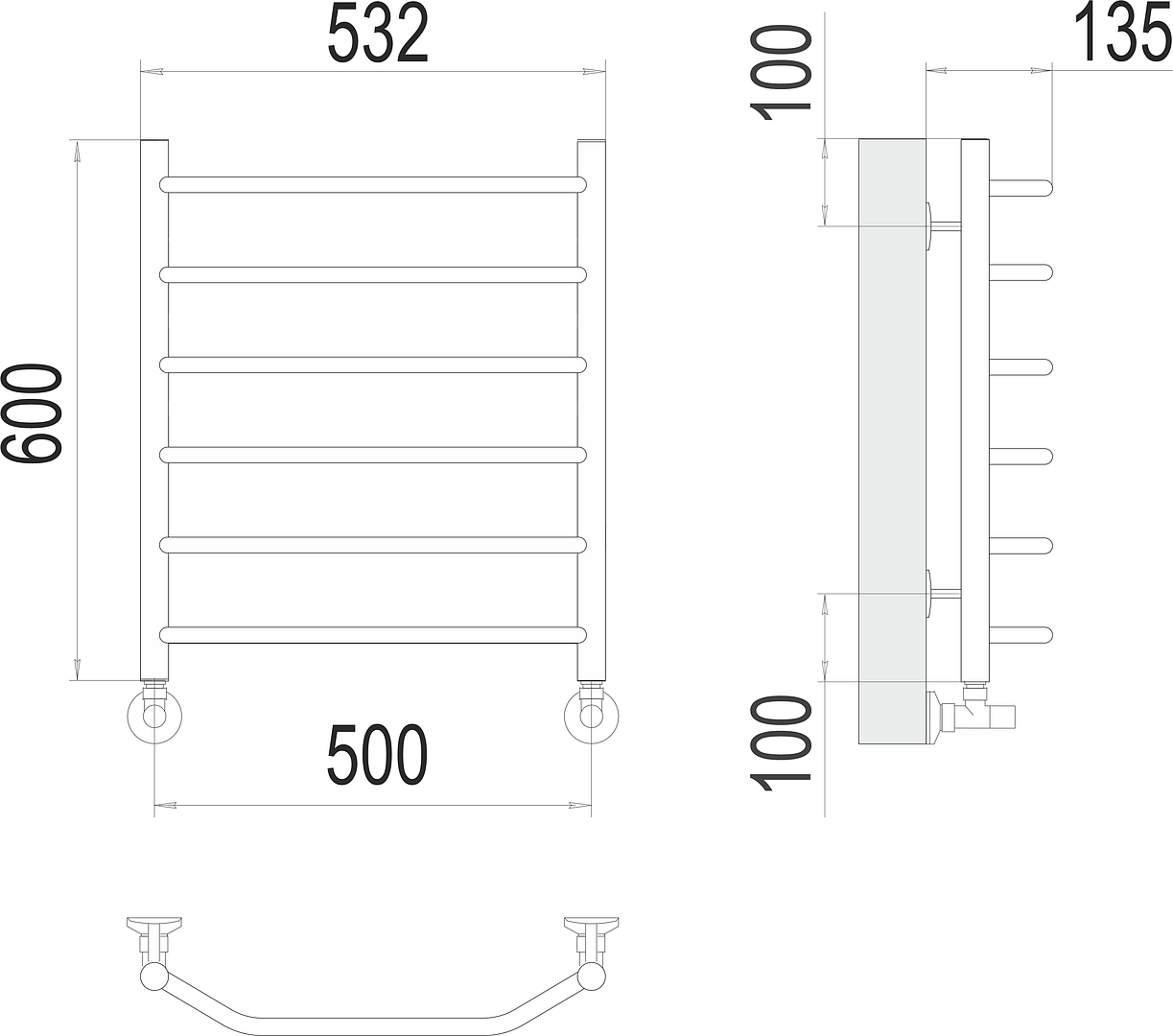 Полотенцесушитель водяной нерж сталь Лесенка (1/2") ВР 500х600мм 6П нижнее подключение б/к Виктория Терминус 4670078530080