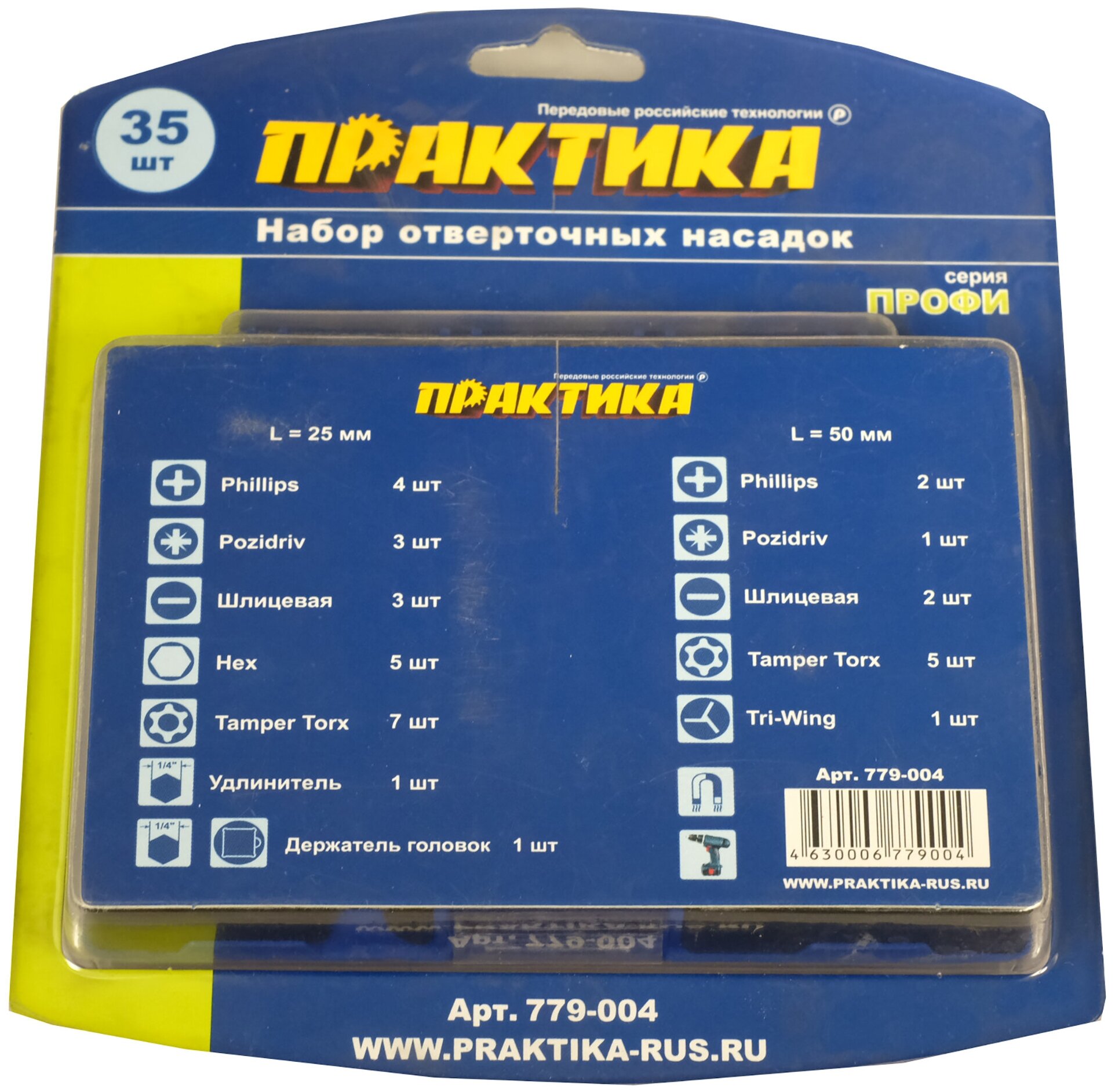Набор бит Практика (779-004) PH/ PZ/ SL / TORX/ HEX/ Tri-Wing 25/50 мм с адаптером (35 шт.)