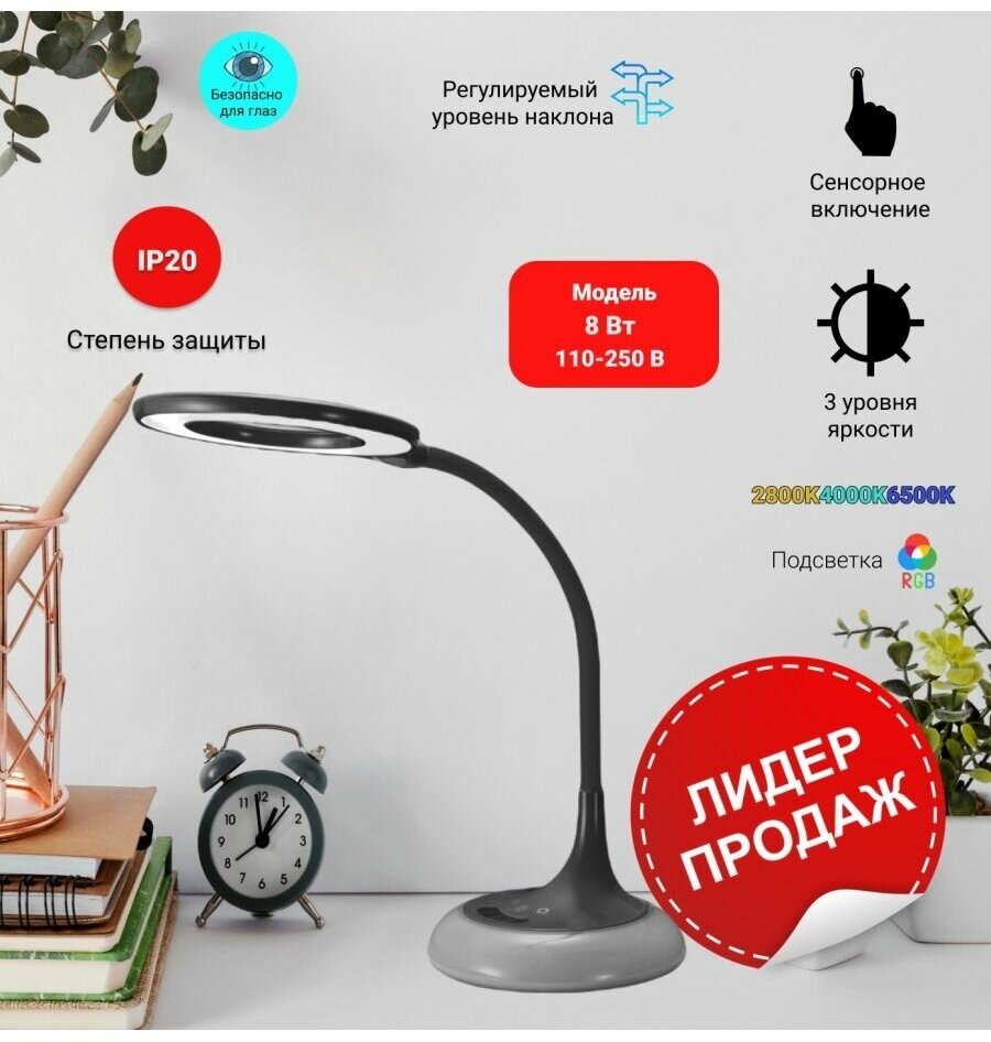 Ниже Вы можете прочитать отзывы на Настольный светодиодный светильник с RGB подсветкой, черный, ознакомится с подробными характеристиками, посмотреть интересные обзоры и фотографии на Настольный светодиодный светильник с RGB подсветкой, черный.