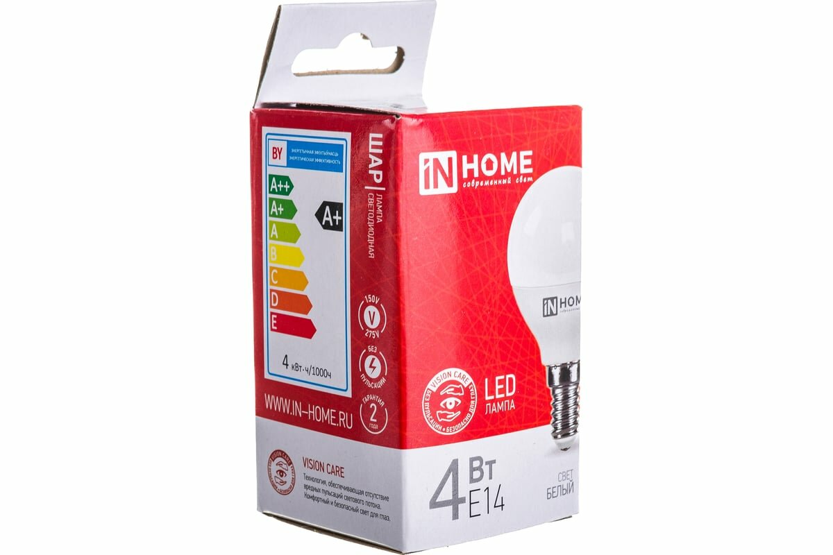 Купить Светодиодная LED лампа IN HOME LED-ШАР-VC 4Вт 230В Е14 4000К 360Лм 4690612030531
