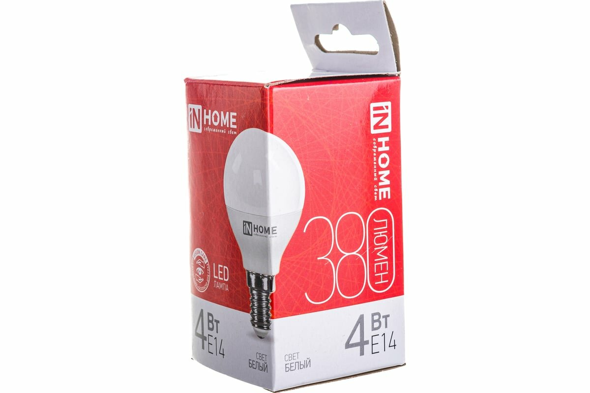 Лампа LED IN HOME 4W/E14/4000K шар 4690612030531
