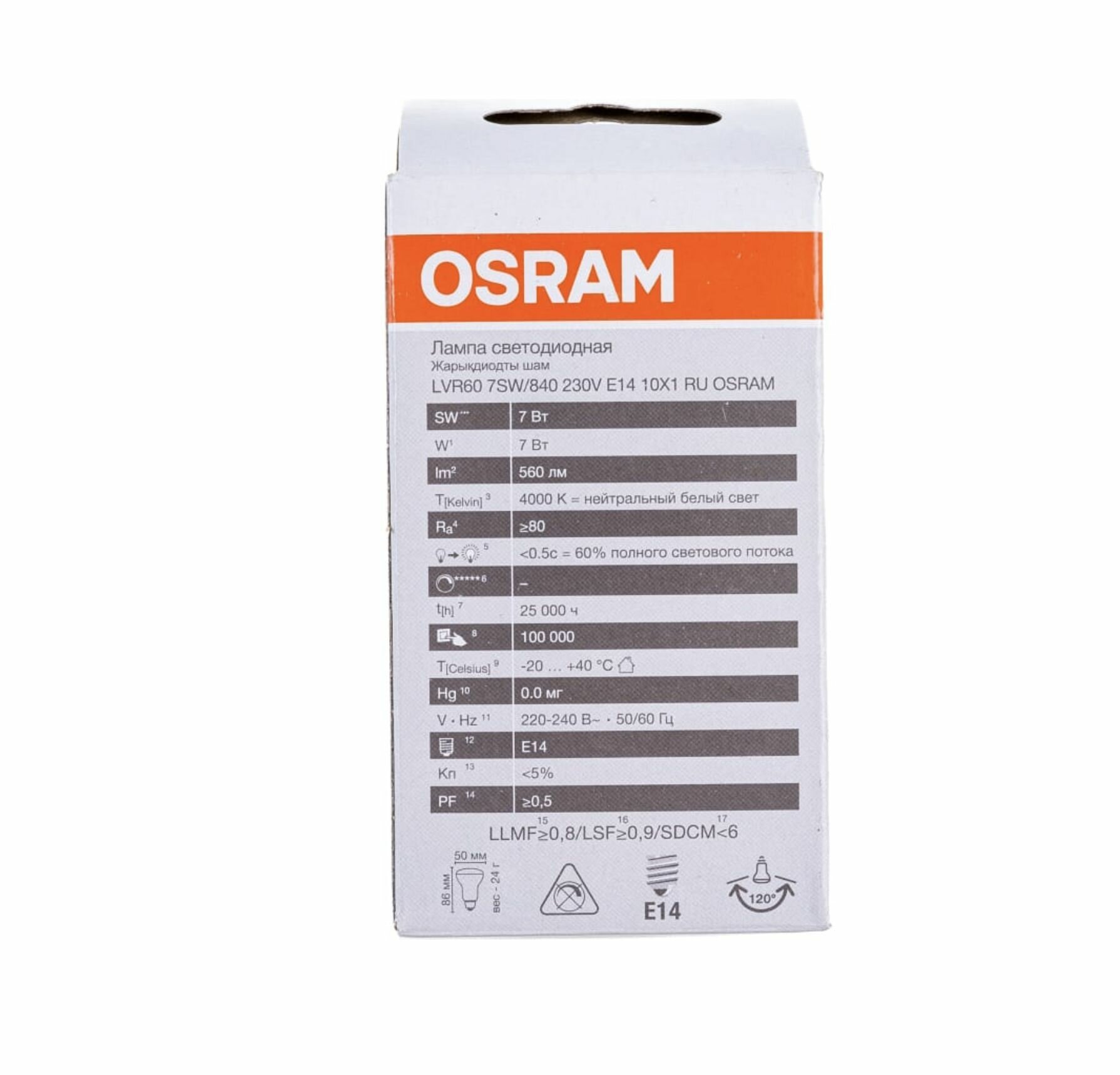 Купить Лампа светодиодная LED Value LVR60 7SW/840 230В E14 10х1 RU, OSRAM 4058075581692 (1 шт.)