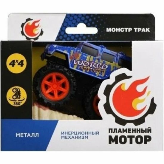 Монстр трак, мет., ин.мех-зм 4х4, вращение на задних колесах, син. Пламенный мотор 870514