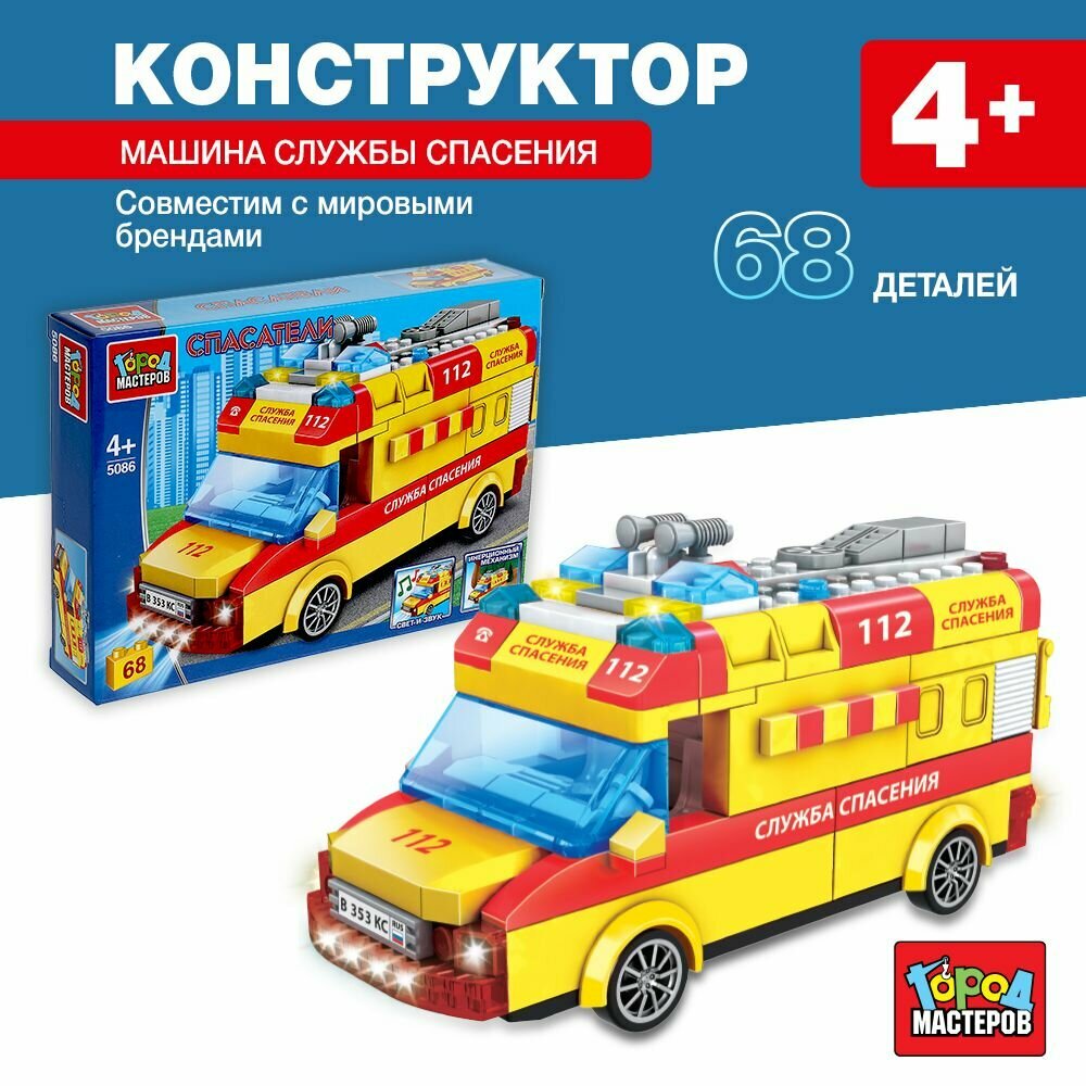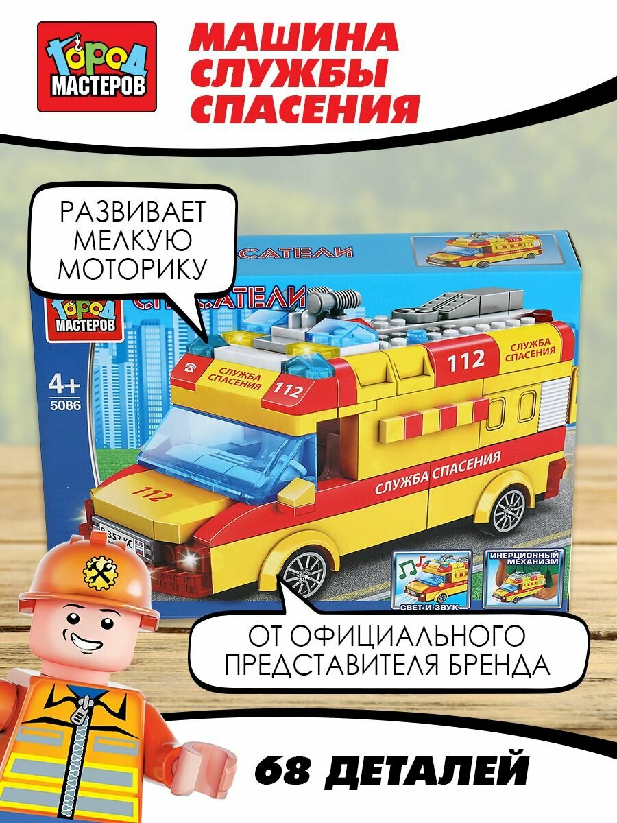Купить Конструктор город мастеров Спасатели 5086 Машина службы спасения (свет, звук, инерция), 68 дет.