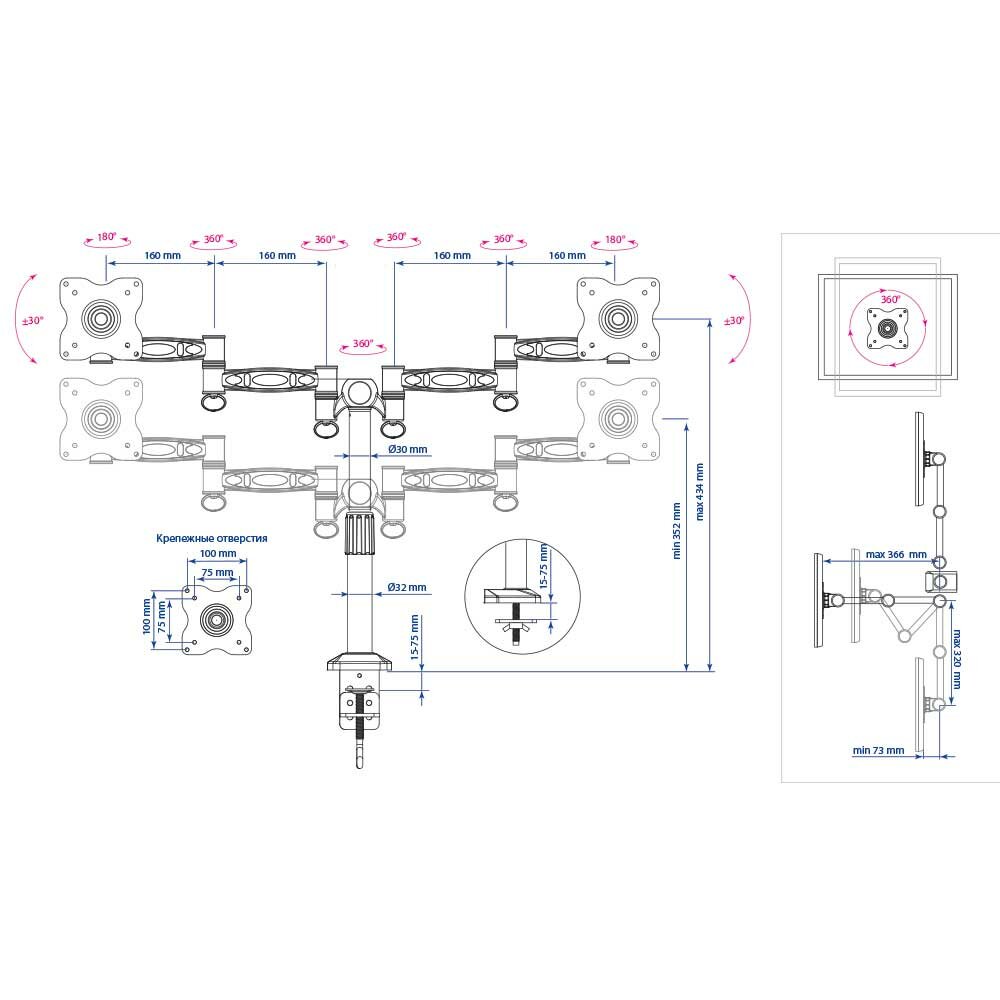 Кронштейн настольный для мониторов Kromax OFFICE-3 (20032) интересное: