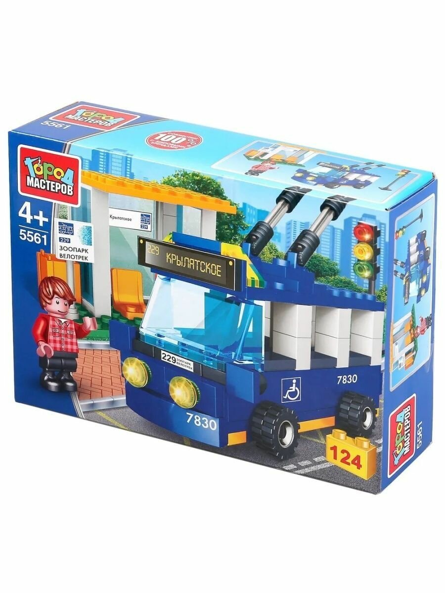 Город мастеров Конструктор «Троллейбус с остановкой» с фигуркой, 124 детали
