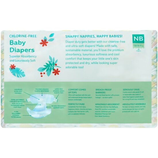 Подгузники размер NB, расцветка "Листочки" Offspring 1360 г 56 шт