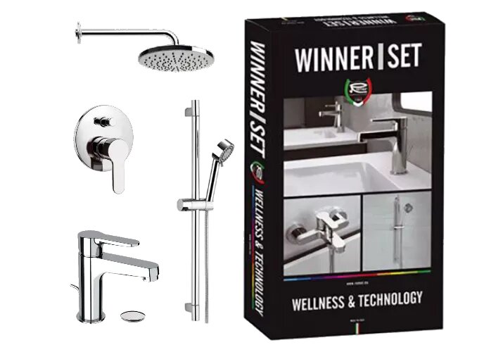 Душевой комплект Remer Winner (смесители для раковины и для ванны, верхний душ, душевой гарнитур)